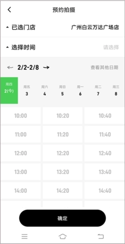 4、进入【预约拍摄】页面,挑选合适的门店与时间,之后再次点击【确定】按钮。