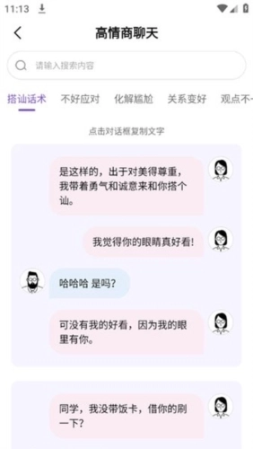 软件配备了若干社交技能训练模块,助力用户提升自身的社交能力,涵盖沟通方法、社交礼节、自我呈现等范畴。