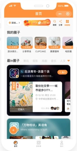【圈子活动】在各式各样时尚又酷炫的圈子里,总有一场活动能契合你的心意!快挑选你的城市、加入一个圈子、选定一场活动、走出家门吧!要是你的城市还没有圈子,那就立刻成为这座城市首位圈子主理人,引领活动新文娱的潮流!