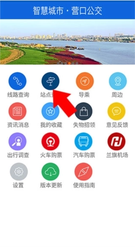 1、并打卡营口行,来到首页后点击站点查询按钮