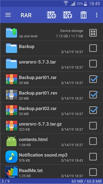 winrar手机版是专门为安卓手机打造的压缩文件解压工具,运用最新压缩与加密算法,能解压几乎所有格式的文件,操作简单,让你在手机上也能体验到电脑版般的解压便捷。此外,它还具备文件打包功能,可帮你将文件、照片、视频等打包,并且支持添加解压密码,保障文件安全。所有功能均完全免费,无需开通任何会员!