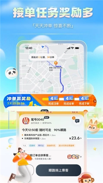 平台依据车主行程,智能匹配推送优质顺路订单
