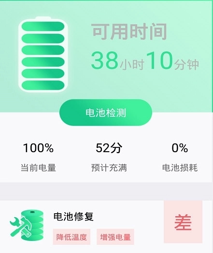 3、点击电池修复,可以实时的修复电池,让你更好的使用