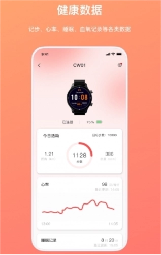 1、为用户提供了手机与手表的数据同步功能,支持多种健康管理、社交分享等功能的实现;
