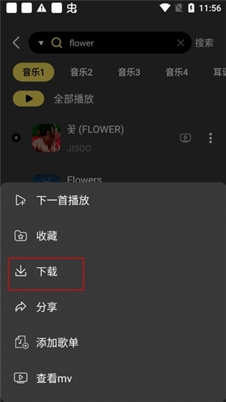 2、点击歌曲右边的三个小点
