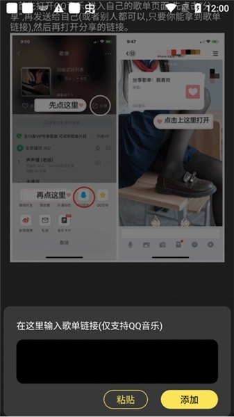 4、粘贴复制好的歌单链接即可