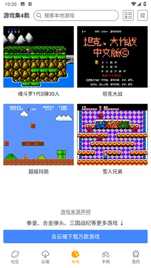 软件了超过万款经典怀旧游戏资源,包括街机游戏、红白机游戏、掌机游戏等