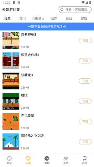 怀旧游戏馆手机版操作起来简单,你输入关键字就可以快速找到自己想要的内容,而且支持多种分辨率的游戏,在不同设备上都可以获得更加好的游戏体验。除此之外,还提供了实用的功能,比如游戏存档、屏幕截图等,让你更好地进行保存。软件还会定期更新游戏资源,你关注之后就可以第一时间进行收到更新消息,快来试试吧。