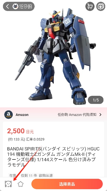 3. 在商品界面中点击左下角的戴耳机的小人偶图标。