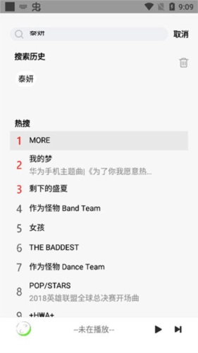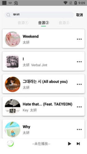 这里可以搜任何关键词,如“泰妍”的歌进行试听;
