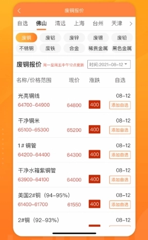 废品联盟提供废铜、废铝、不锈钢、废锌、废铅、废锡、稀有金属等各类废料的实时报价,还包含贵金属、合金等报价数据,能满足用户全方位的市场需求。企业废料销售者可通过平台实时掌握废料价格变动,发布企业产品信息,参与现货直播交易,全面了解金属价格波动状况,同时获取全国一线货源的招标信息。