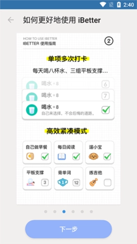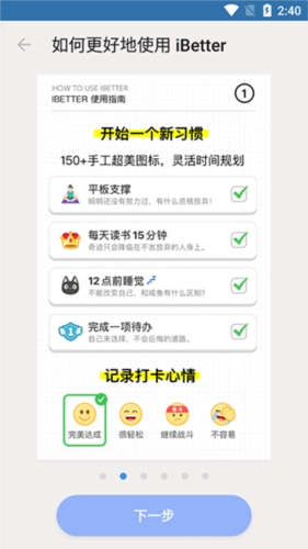 iBetter能够支持多任务处理,允许用户同时开启3个习惯的养成计划。