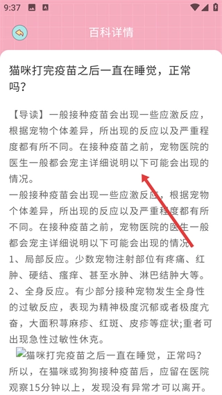 4、点击该条目进入对应的百科详情页后,查看关于【猫咪打完疫苗之后一直在睡觉,正常吗?】的相关解答。