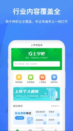 1、题量充足,操作便捷:上学吧题库收录了海量试题资源,覆盖多种考试类型,能助力你在线练习各类试题,提升考试复习的效率。