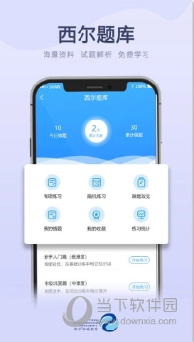 2、点击【西尔题库】,里面为用户提供了十分丰富的习题测试,像专项练习、随机练习、难题攻克等,选择中低难度后,点击开始练习;