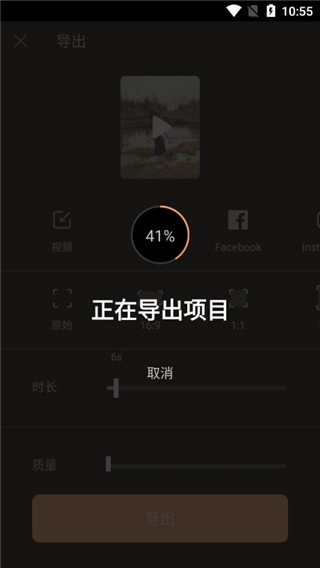 1、点击右上角的导出按钮进入导出页面,在该页面选择视频格式,同时设置导出时长、质量以及画面比例。